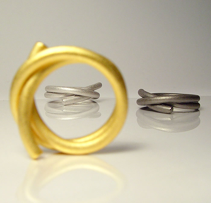 Der Knoten, uraltes und universelles Symbol der Verbundenheit, steht seit 2001 im Mittelpunkt des Gestaltungswerks der deutschen Goldschmiedin und Schmuckgestalterin. Für Martina Tornow ist das geknüpfte Band aus Edelmetall ein zeitloser Ausdruck für die Beziehung zweier Menschen: